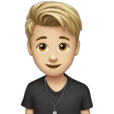 young white boy with justin beiber hairstyle standing alongside a black cane-corso emoji