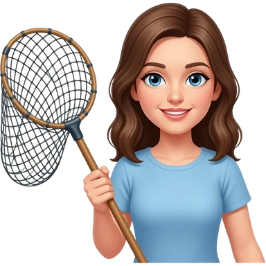 young lady with holding fisher net half body close up emoji