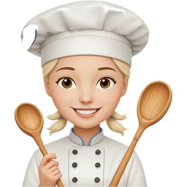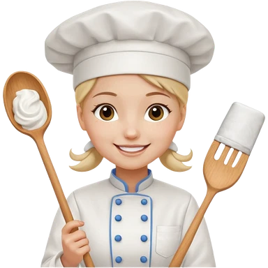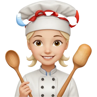 Young female baker – wearing white chef hat, holding a piping bag emoji
