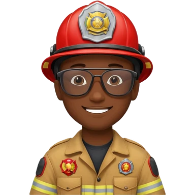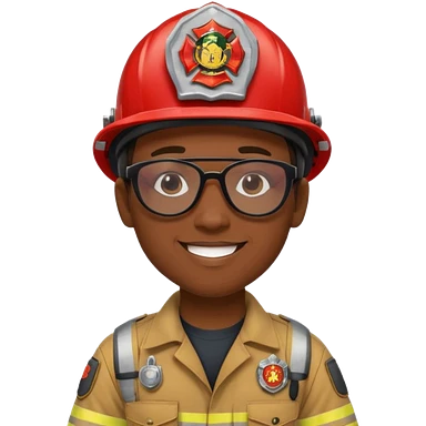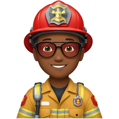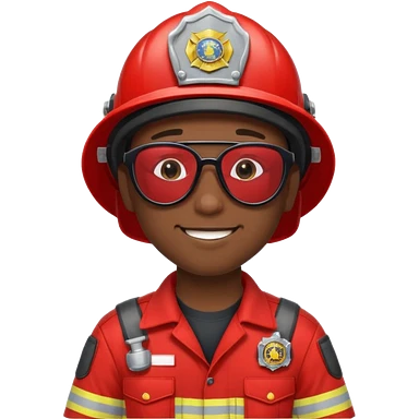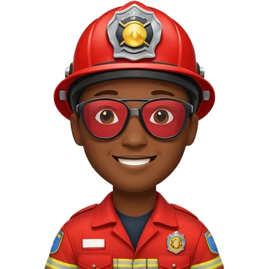 Young, male, dark skin, wearing sunglasses, firefighter uniform, happy emoji | AI Emoji Generator