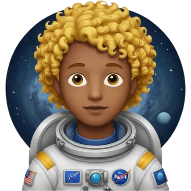 Astronauts, Young, male, dark skin, yellow curly hair emoji