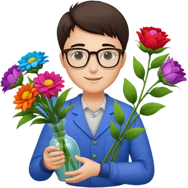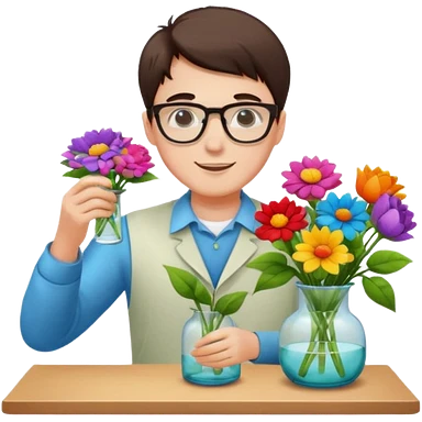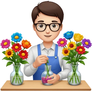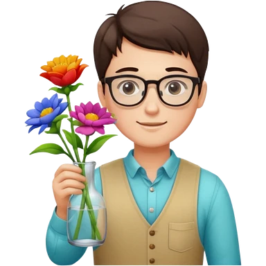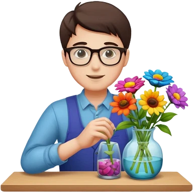 Young male florist – wearing glasses, arranging flowers in a vase. emoji | AI Emoji Generator