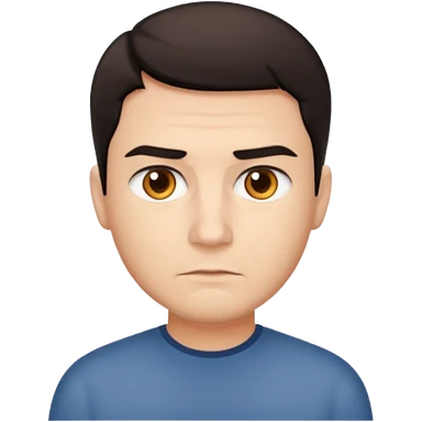 caucasian young man with black hair, mustache stubble and thick eyebrows emoji