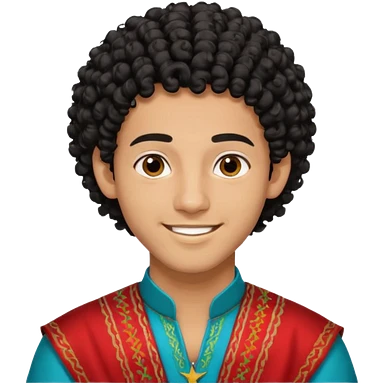 Young man with black curly hair fringe Haircut and light dark skin, moroccan / amazingh race emoji