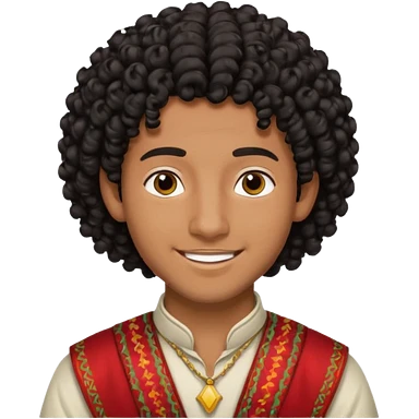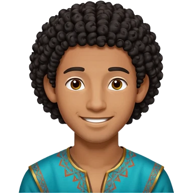 Young man with black curly hair cascade Haircut and dark skin, moroccan / amazingh race emoji