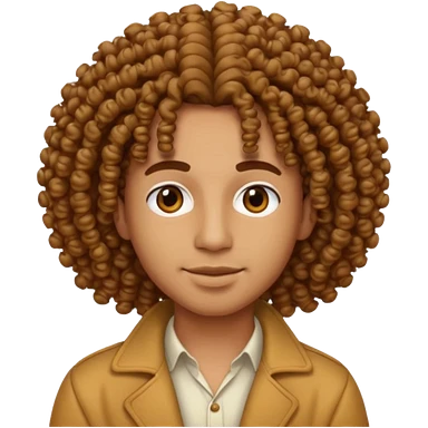 A young woman with light brown skin, black curly hair emoji