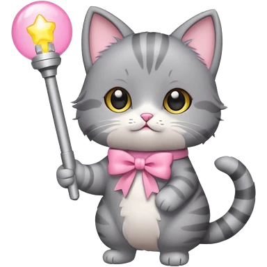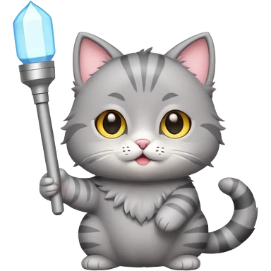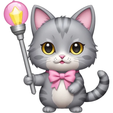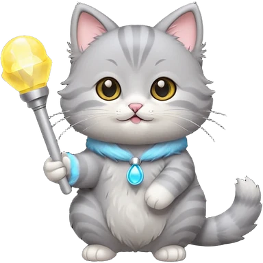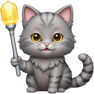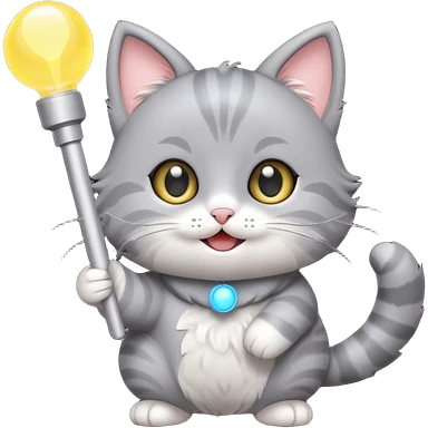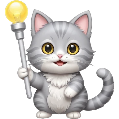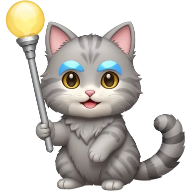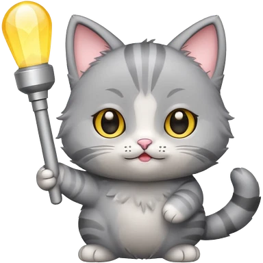 chibi cute gray cat holding a light stick happily emoji