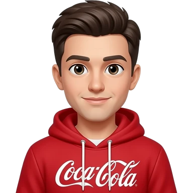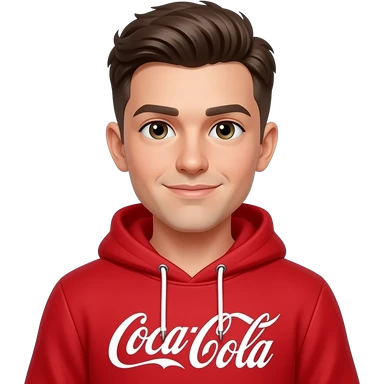 young man with taper fade + messy fringe wearing coca coka hoodir emoji | AI Emoji Generator