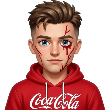 bloody vein eyes young man with taper fade + messy fringe wearing coca coka hoodir emoji
