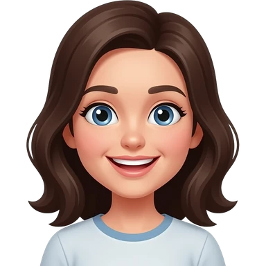 Simple emoji face of a joyful young woman, eyes opened slightly, big smiling mouth with teeth, subtle dimples, clean vector style, bold outlines, flat colors, no background, centered, high contrast, minimal details.” emoji