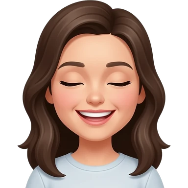 Simple emoji face of a joyful young woman, eyes closed, big smiling mouth with teeth, subtle dimples, clean vector style, bold outlines, flat colors, no background, centered, high contrast, minimal details.” emoji