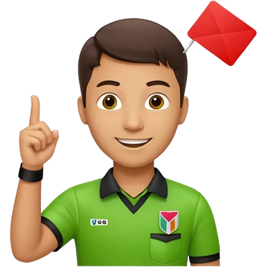 Young Referee – Energetic Style Wearing bright green shirt, smiling slightly, holding red card high with whistle around neck. emoji | AI Emoji Generator