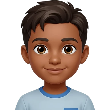 a young boy with short black hair with olive green eyes, full lips and thick eyebrows hugging a young girl with medium dark brown hair with brown eyes and dark eyebrows and with a big smile emoji