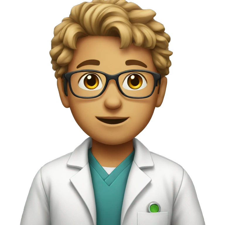 Portrait of a young scientist wearing a white lab coat, glasses emoji