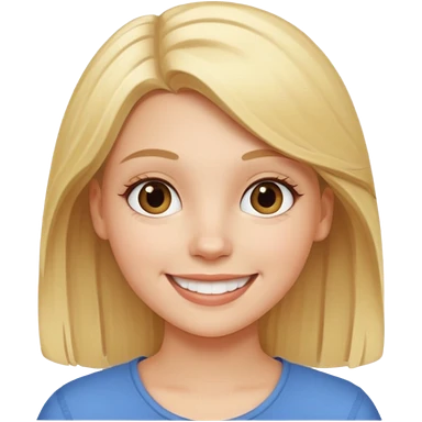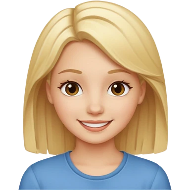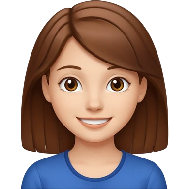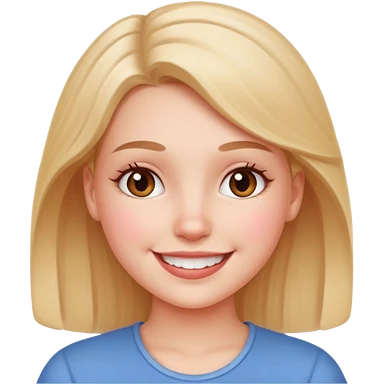 a young white girl with long wavy brown hair with blonde highlights, brown eyes smiling emoji