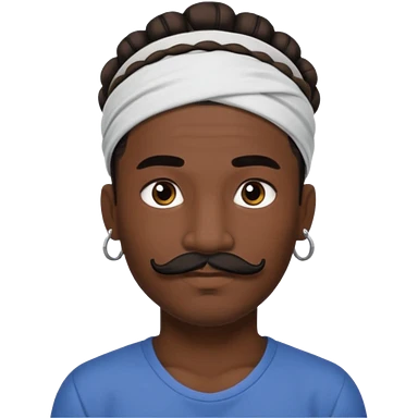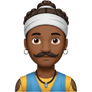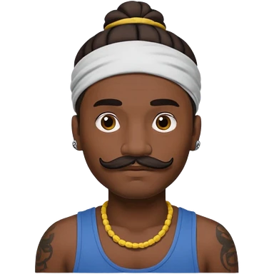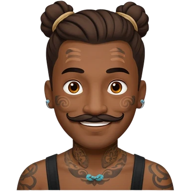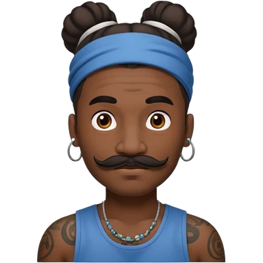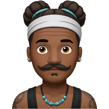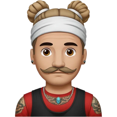 bun hair man and mustache and face tattoos very heavy and headband emoji