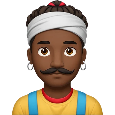 single bun hair man and mustache and face tattoos very heavy and headband emoji