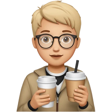 Student with round glasses and takeaway coffee emoji