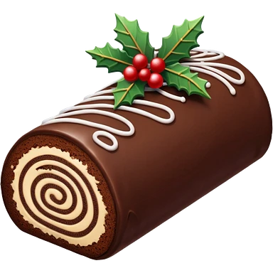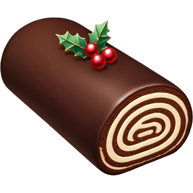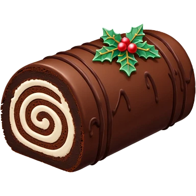Classic yule log cake with chocolate frosting, decorated with red berries and holly leaves emoji