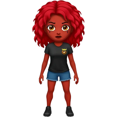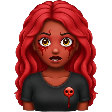 Faça me um emoji de um zumbi mulher de cabelos vermelho escuro longos ondulado usando uma blusa preta, faça no estilo iphone emoji