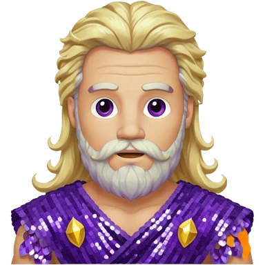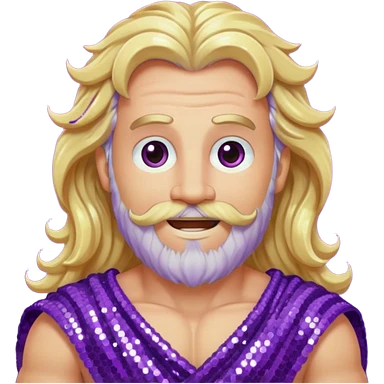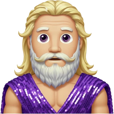 Zeus from Olympus Gods with long blonde wavy hair and beard, purple sequin loincloth emoji
