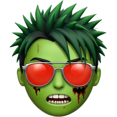 Emoji de zombi com óculos e cabelo preto emo sem pontas e óculos transparentes e z emoji