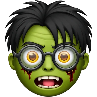 Emoji de zombi com óculos e cabelo preto emo emoji