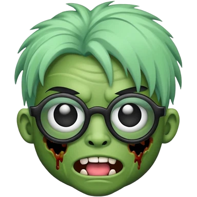 Emoji de zombi com óculos e cabelo preto emo sem pontas e óculos transparentes e a pele de cor verde pastel emoji