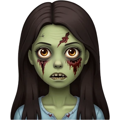 Faça uma garota com um cabelo castanho longos, muito, muito escuro, quase preto, Faça ela zumbi emoji