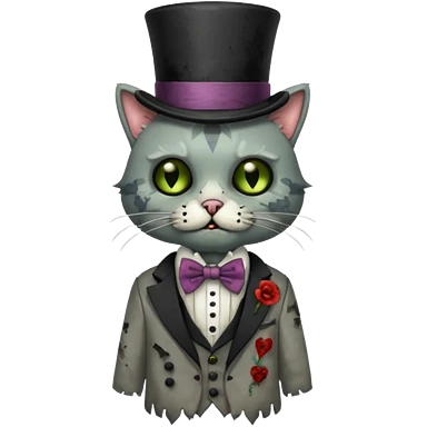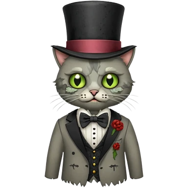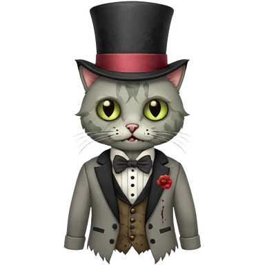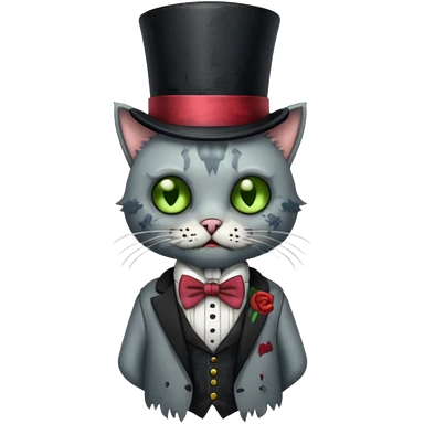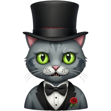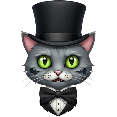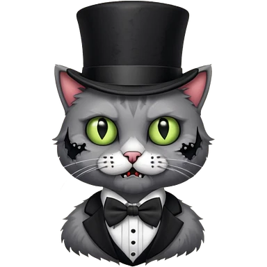 zombie cat with bow tie and top hat emoji