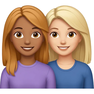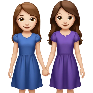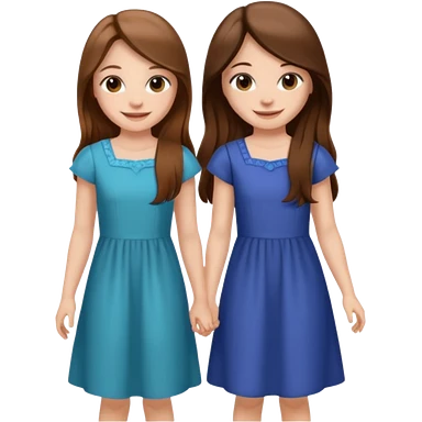 generate me emojis of sisters, one should look older, the other younger. the older one has dark brown hair, long, straight, the younger one is slightly lighter, also straight, long. clothes are any in principle, the main thing is that they more or less look like each other emoji