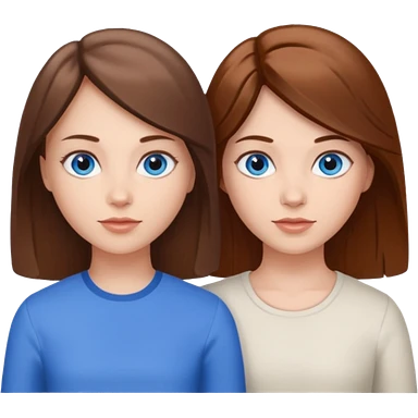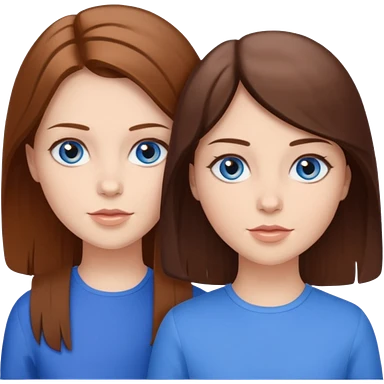 generate me emojis of sisters, one should look older, the other younger. the older one has dark brown hair, long, straight, the younger one is slightly lighter, also straight, long. clothes are any in principle, the main thing is that they more or less look like each other emoji