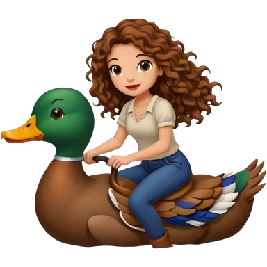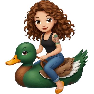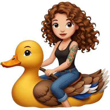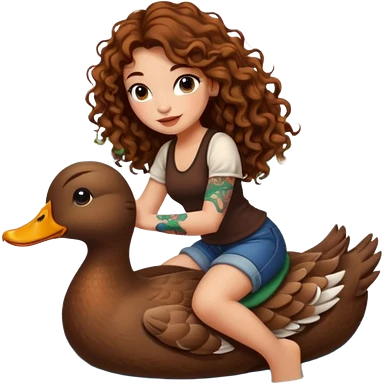 cute woman long curly brown hair tattoos riding duck through pond emoji