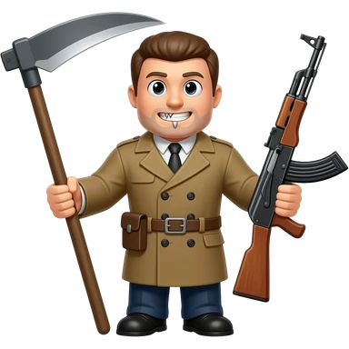GOD DAMN IT I BROKE MY TOOTH WHERES VIADIMIR KOLTSOV (roblox character who is yellow and is holding a sickle and a ak47 and has a brown trenchcoat emoji