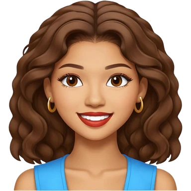 Zendaya wearing a pink shirt with long wavy brown hair emoji
