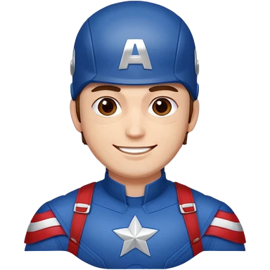 Make a man with brown eyes wearing a Captain America costume who is laughing emoji