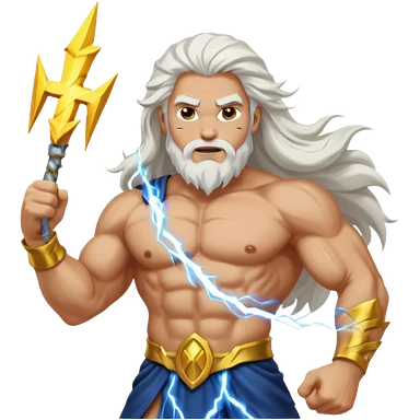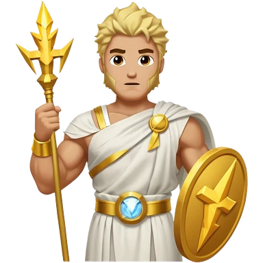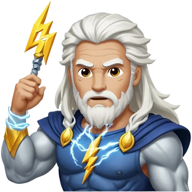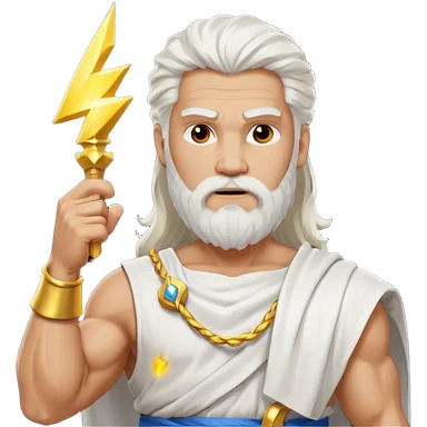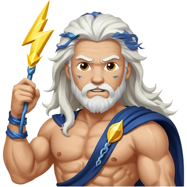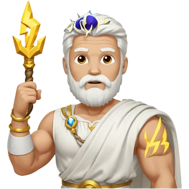 Zeus from Roman Deities with long lilac wavy hair, purple sequin toga emoji
