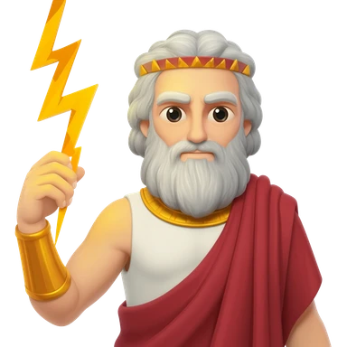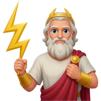 Zeus, whole body, white clothes, long hair, lightnings emoji