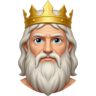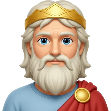 Zeus from Greek Mythology with blue eyes, long blonde hair, lilac metallic toga, silver necklace emoji
