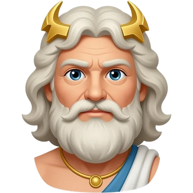 Zeus from Greek Mythology with blue eyes, long blonde hair, light steel blue metallic toga, silver necklace emoji