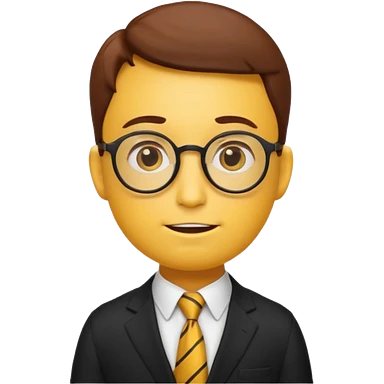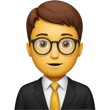 emoji character with the classic nerd emoji head (yellow round face, large brown glasses, buck teeth, freckles). The body is human-like, dressed in an elegant black suit with a tie, in a thoughtful and philosophical pose — emoji