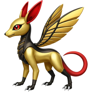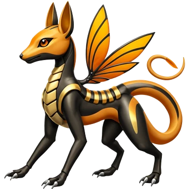 Shiny 4-legged Meloetta-Anubis-Salandit-Beedrill-fusion, full body emoji