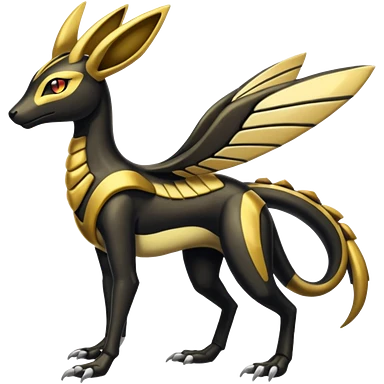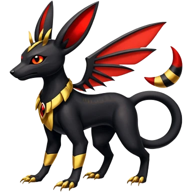 Shiny 4-legged Umbreon-Anubis-Salandit-Beedrill-Zeraora-fusion, full body emoji