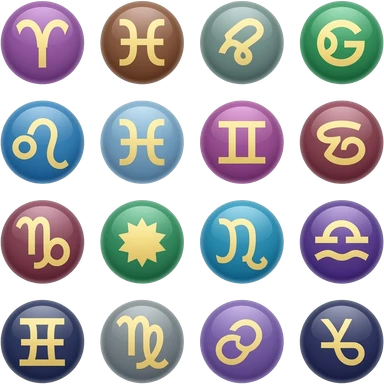 A mystical, glowing crystal ball with swirling sparkles, surrounded by zodiac signs and planets floating in space, all set against a transparent background. Use bright purples, blues, and golds to create a magical, mysterious vibe. emoji