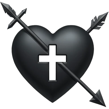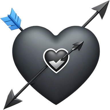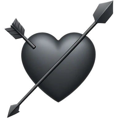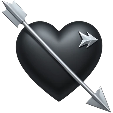 Black heart with cross arrow. Don't use red colour . Use normal Arrow which goes from one side and come out of other . Don't use fancy arrow. Make it that it goes from bottom right to come on top left. Don't use red colour emoji
