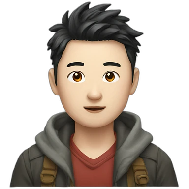 A man with a spiky haircut and black hair. A black beard like a zohan. Brown eyes, a slightly chubby build. emoji