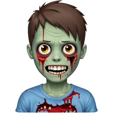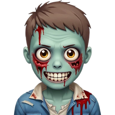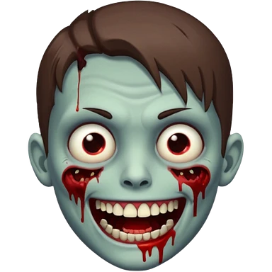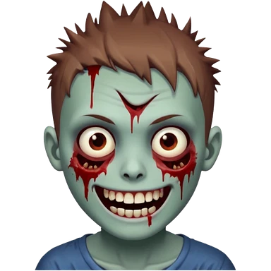 zombie boy with emo brown hair, white skin, and white eyes; an open smile, and bloodied teeth; emoji | AI Emoji Generator