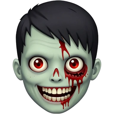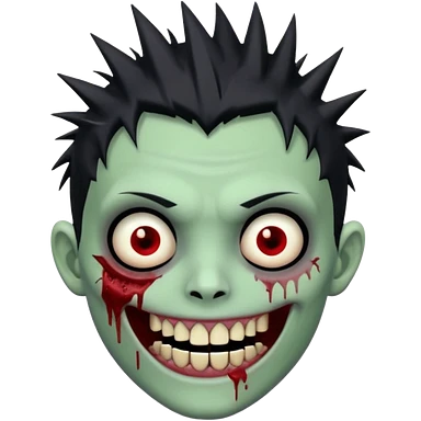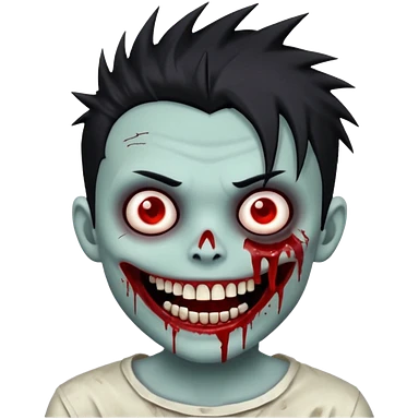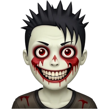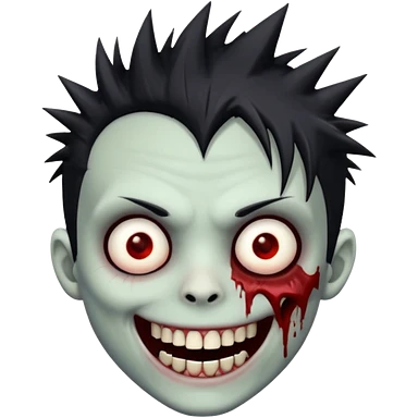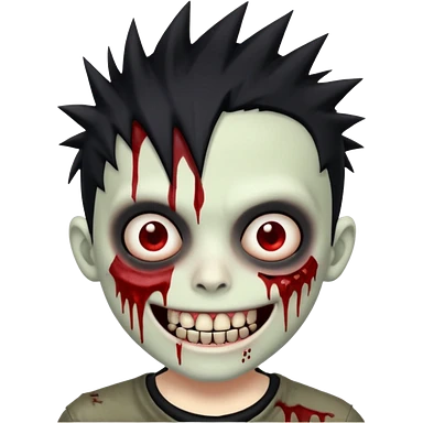 zombie boy with emo spiky hair, white skin, and white eyes; an open smile, and bloodied teeth; emoji | AI Emoji Generator
