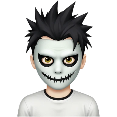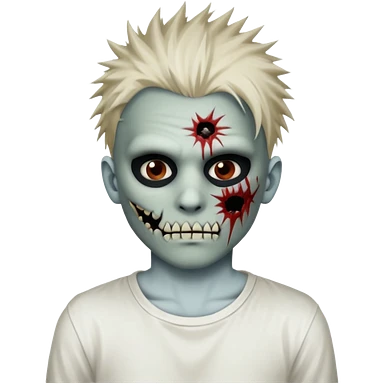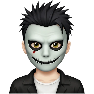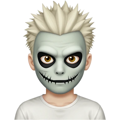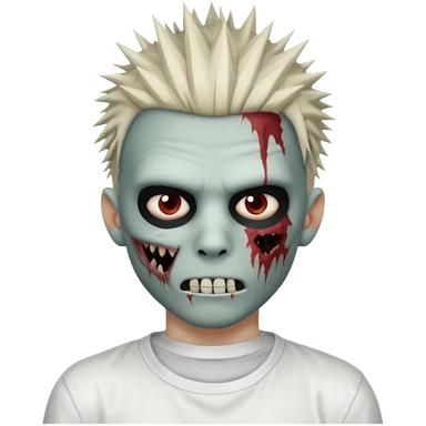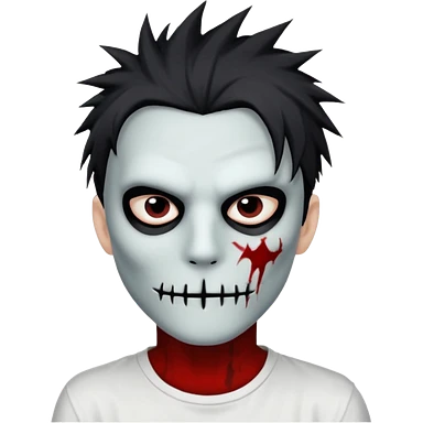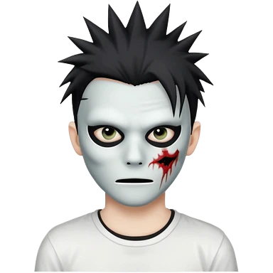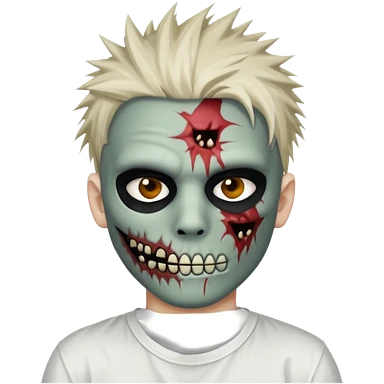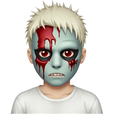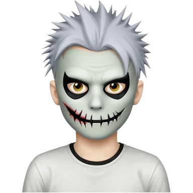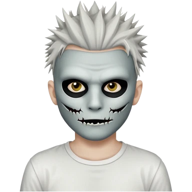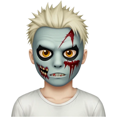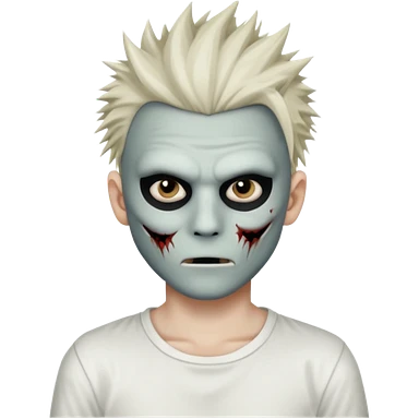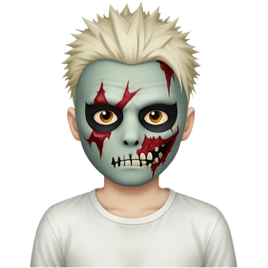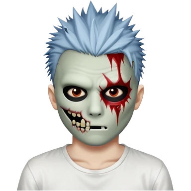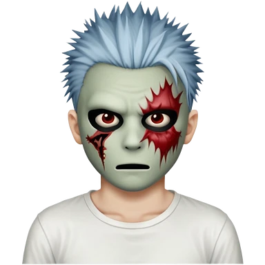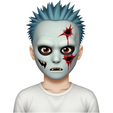 zombie boy with spiky emo hair and white shirt emoji and He wears an anonymous mask on half his face and has wounds on the other half. emoji