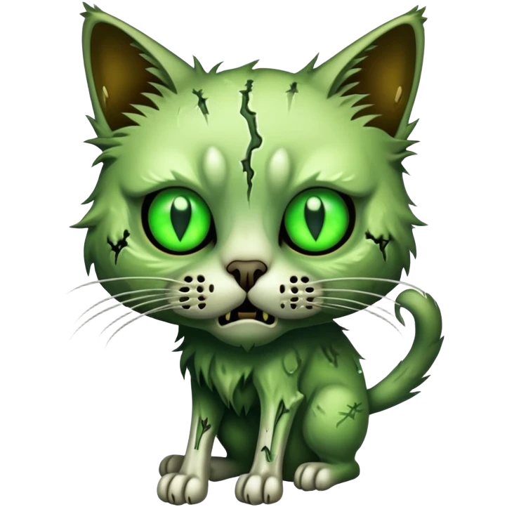zombie cat with decaying fur, glowing eyes, and exposed bones emoji | AI Emoji Generator